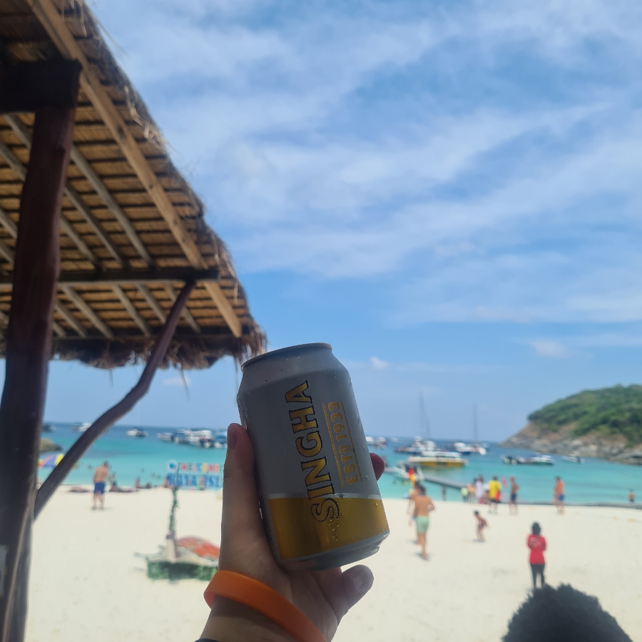 너무 더워서 100밧주고 싱하 한캔,, ( 여러캔) 사마셔주고요, 앉을곳도 없어서 해변에서 바짝 태웟답니다.
