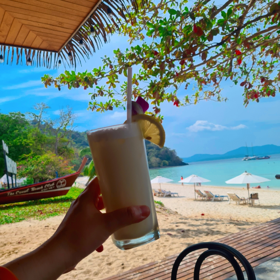 코랄섬 바다는 별로 안예뻐서,, 바가 있나봐요 바,,? 바,,,, 네,,, 여기서 맥주를 시원하게 때려주고 ( 아쉽게도 생맥아니고 모두 병맥입니다... ) 피나콜라다 때려주니 행복했어요.