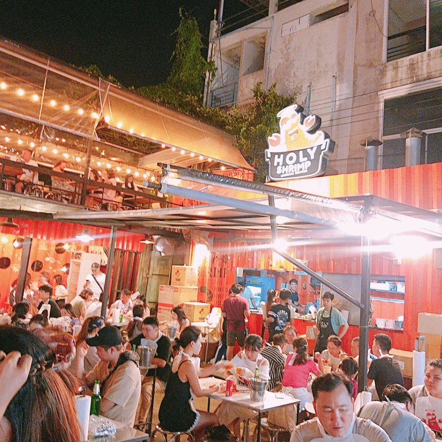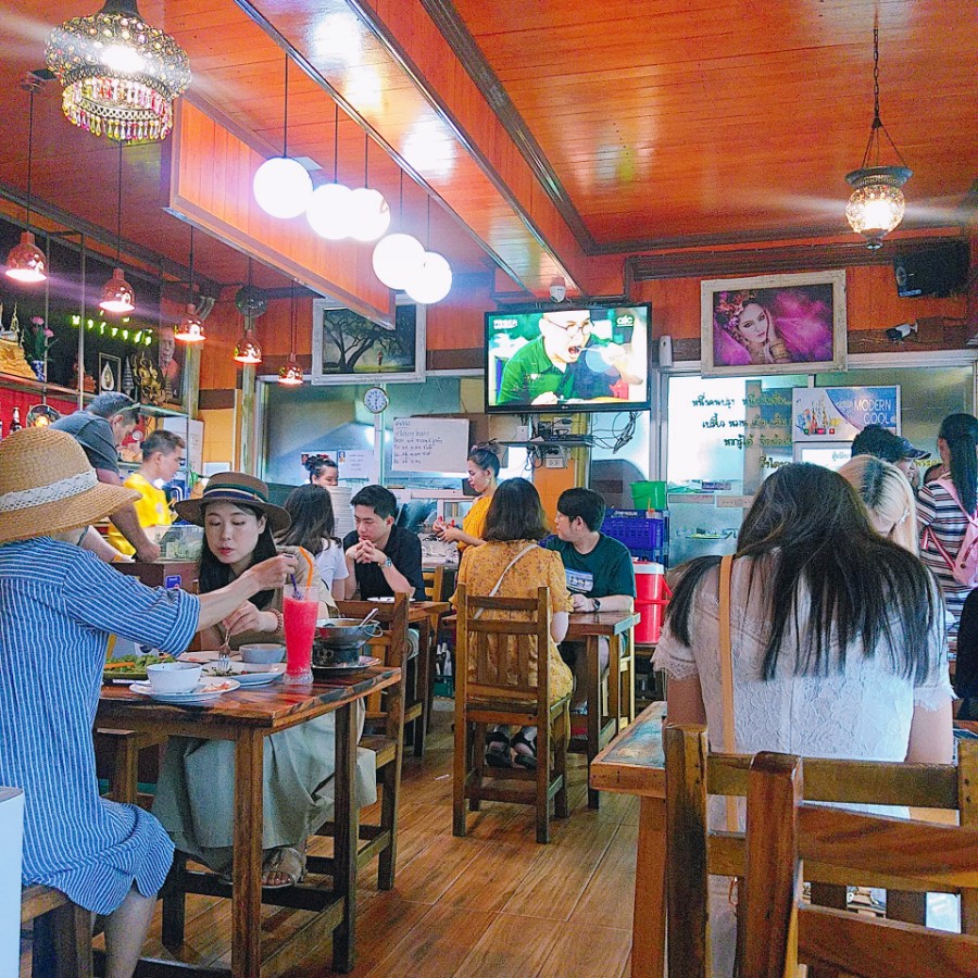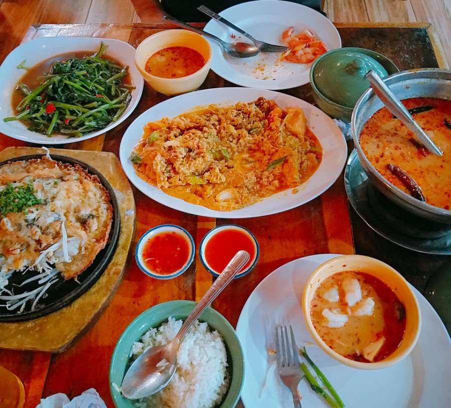 새우세트로 조금맵게+창 맥주+ 스파게티사리 = 500밧~600밧정도었어요.
